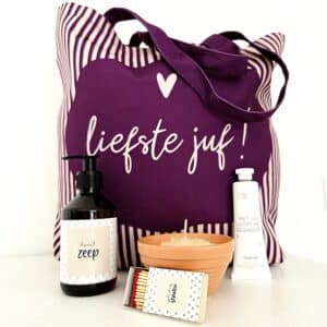 Gevulde cadeautas voor de juf | Liefste juf (paars)
