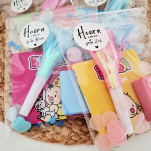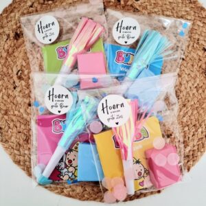 Prijsklasse: € 2,75 tot € 3,00 Incl. BTWKant en klare geboortetraktaties | bellenblaas en toeter