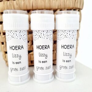 Bellenblaas met eigen tekst | Hoera een zusje | 8 stuks