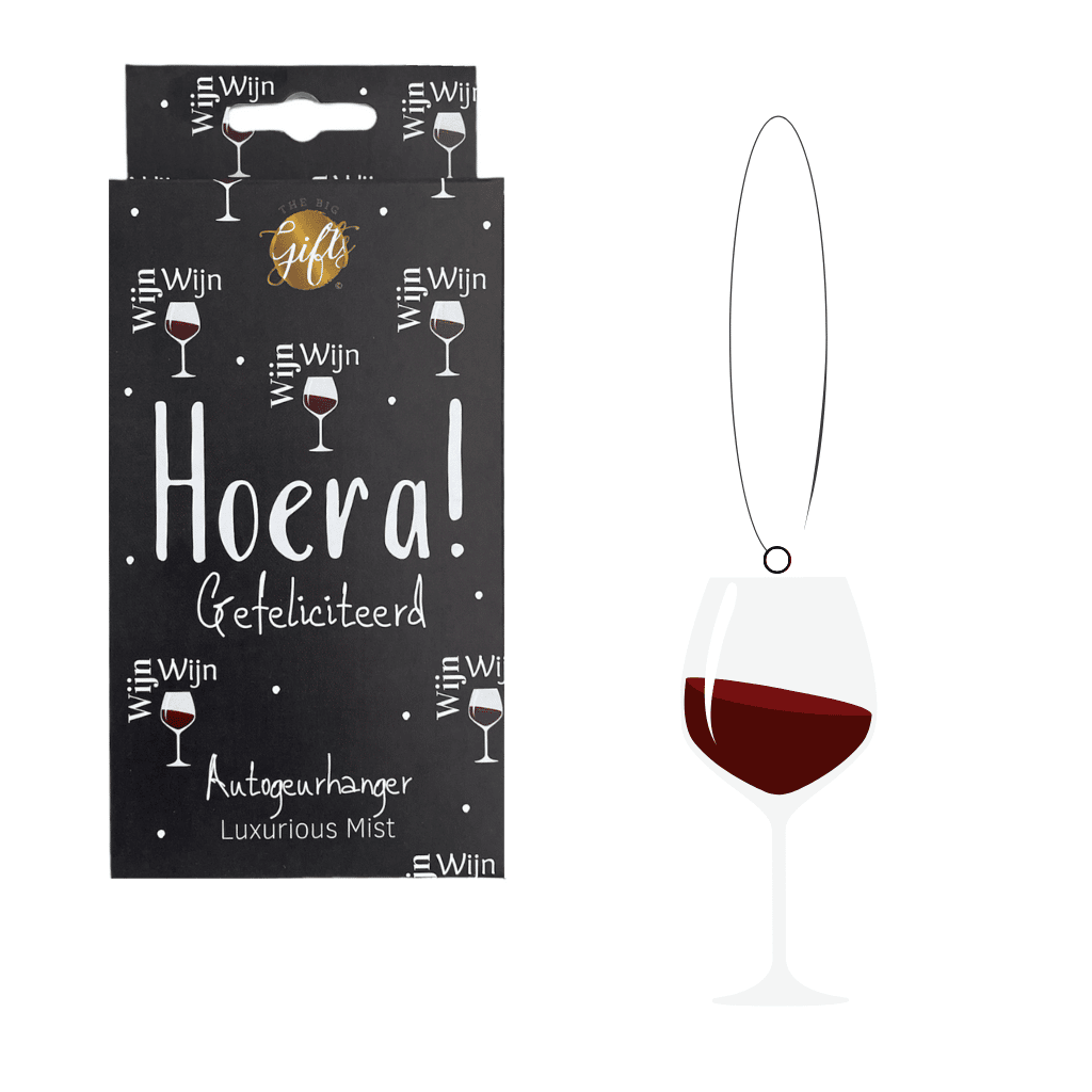 Deze autogeurhanger is ontworpen als subtiele felicitatie voor onderweg. Het wijn glas design en de tekst Hoera gefeliciteerd geven het product een vrolijke en elegante uitstraling. Geschikt voor vrouwen die graag iets persoonlijks in de auto hebben zonder dat het te opvallend is.
