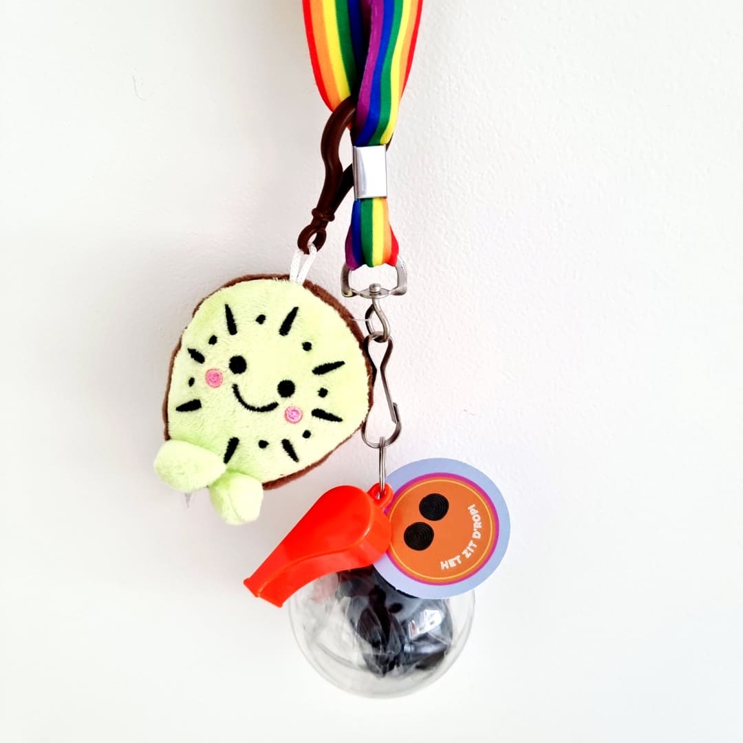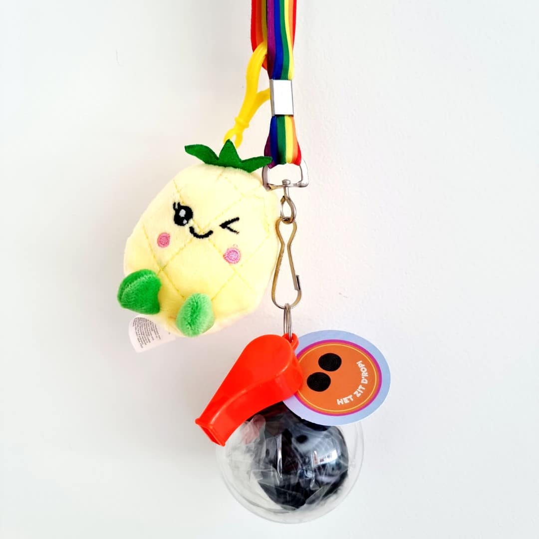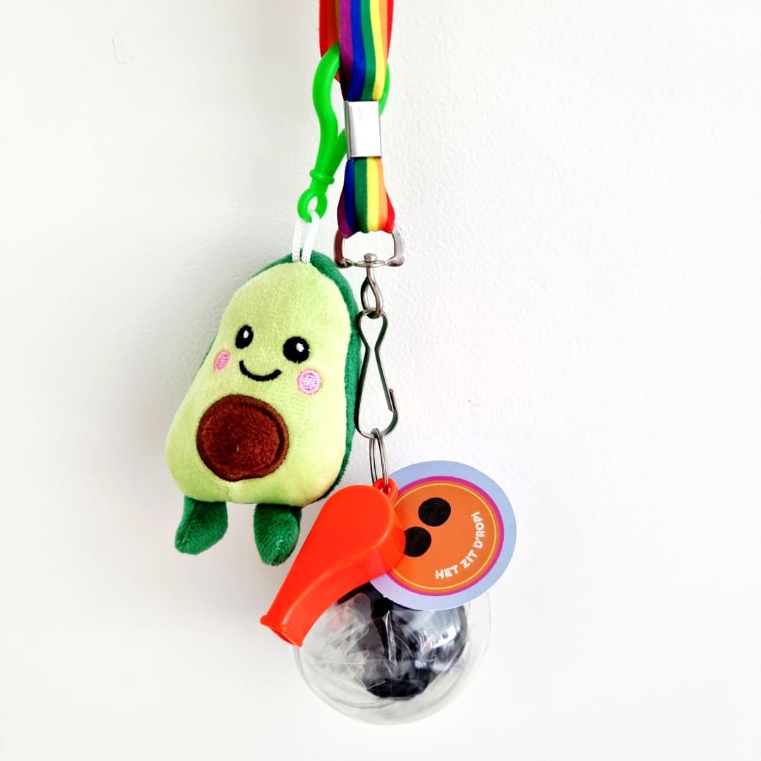 Aan de bal zit een kleurrijk keycord met fluit. Dat maakt het niet alleen een snoeptraktatie, maar ook een blijvende herinnering aan de Avond4daagse. Ideaal voor scholen, verenigingen en ouders die snel iets leuks willen regelen.
