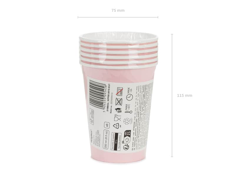 Met een hoogte van 115 mm en een diameter van 75 mm bieden deze bekers een inhoud van 250 ml. De set bevat zes stuks, ideaal voor verjaardagen en kleine tot middelgrote feestjes. Ze zijn licht in gewicht, stapelbaar en direct klaar voor gebruik.