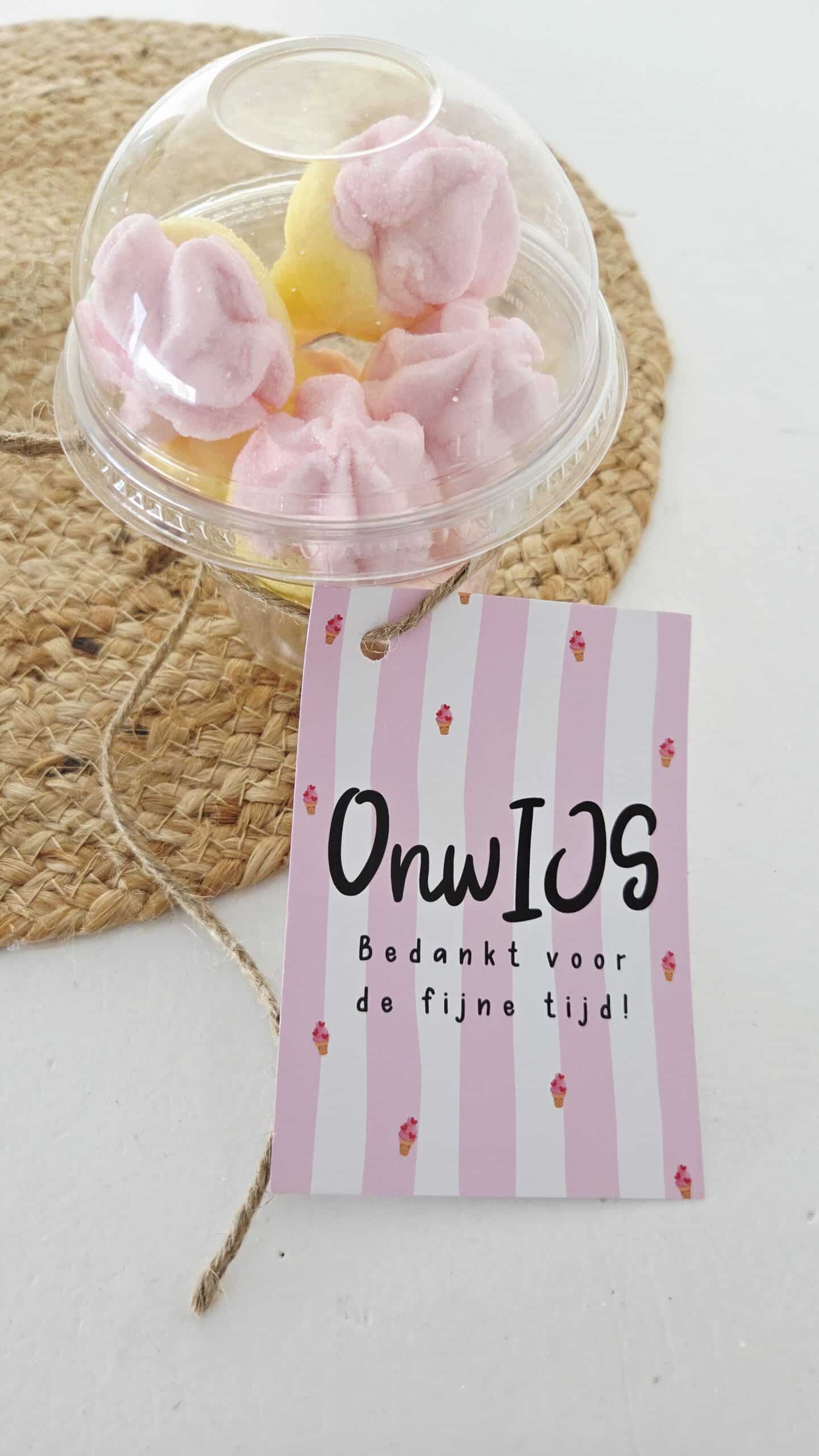 Voeg Cadeaukaart Onwijs bedankt voor de fijne tijd toe aan je bestelling en geef jouw bedankje een frisse en persoonlijke uitstraling.