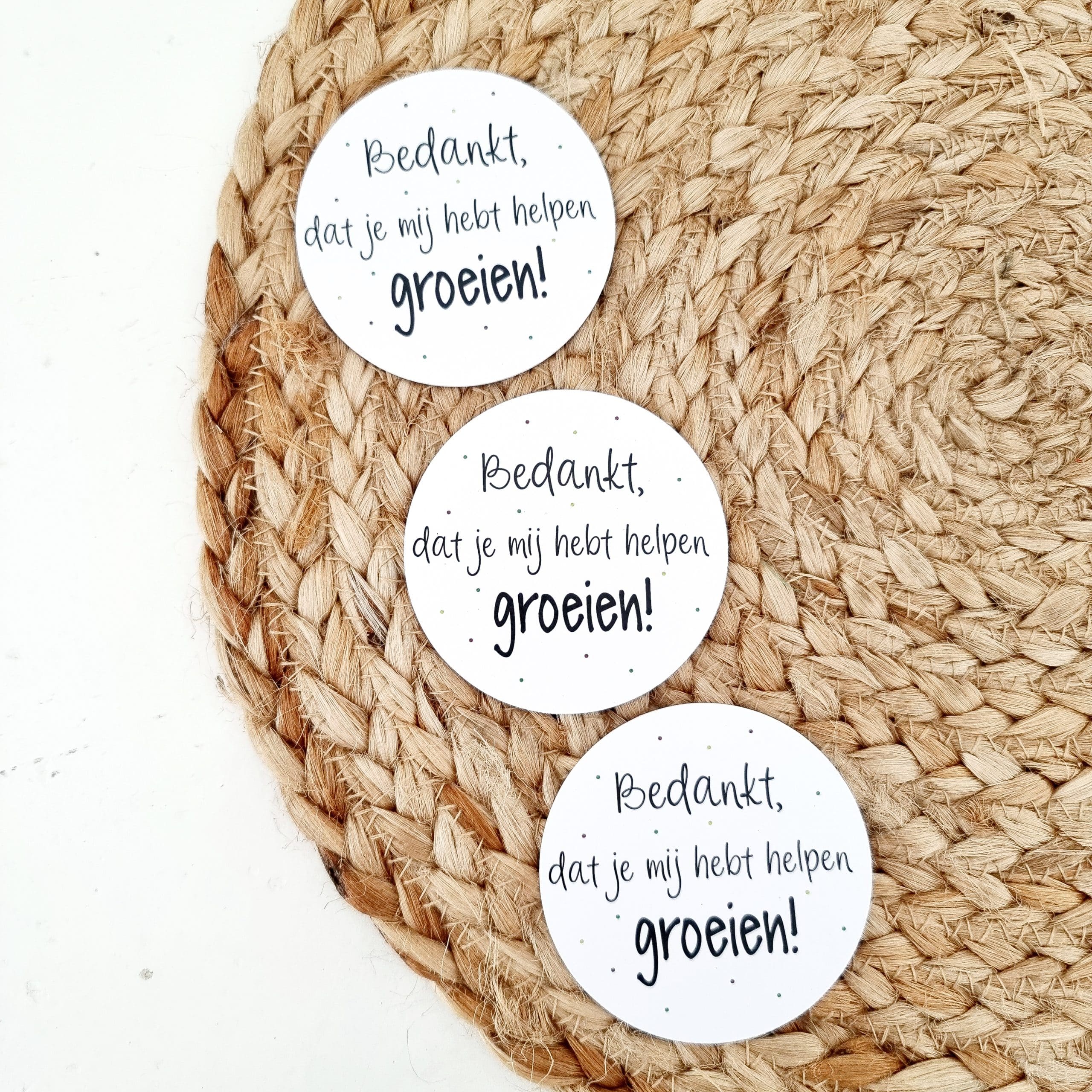 Cadeaulabel (rond) | Bedankt dat je mij hebt helpen groeien | 3 stuks