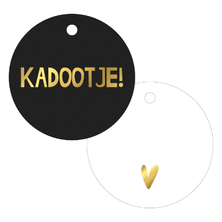 BeschrijvingDeze stijlvolle ronde cadeaulabels geven ieder cadeau een luxe en feestelijke uitstraling. De set bestaat uit drie zwarte labels met gouden opdruk “Kadootje”, aangevuld met een wit label met een goud hartje op de achterzijde. Ideaal voor cadeautjes, feestdagen en verpakkingen met een chique uitstraling.