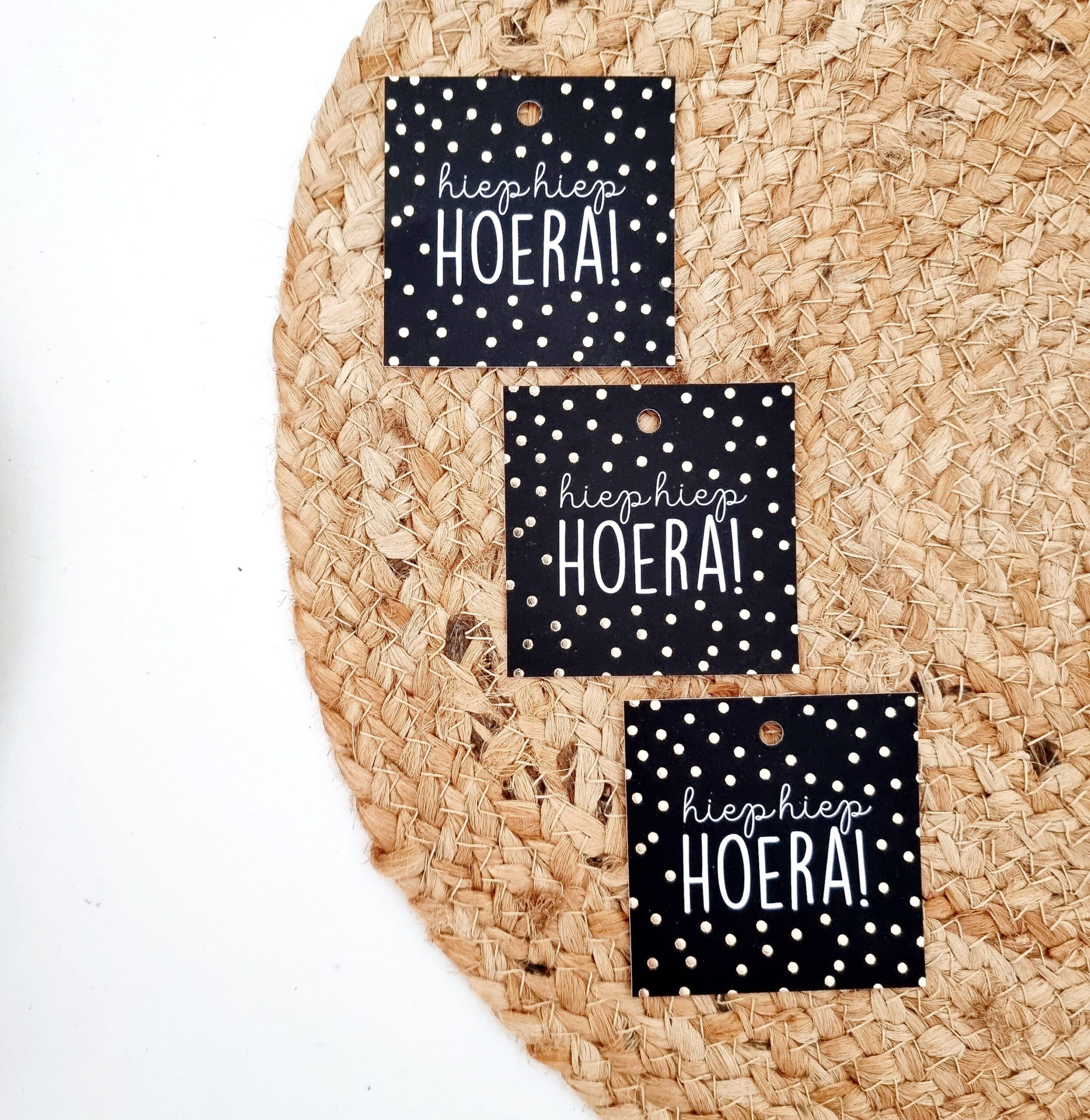 Cadeaulabel (vierkant) | Hiep hiep hoera | 3 stuks