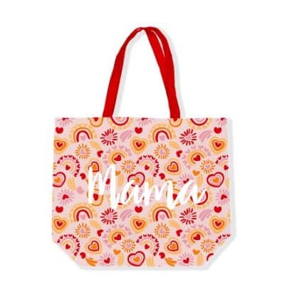 Deze Mama tas is verkrijgbaar in drie verschillende prints: een vrolijke love print, een speelse hartjesprint en een stoere panterprint. De print is dubbelzijdig aangebracht, waardoor de tas er aan beide kanten prachtig uitziet. De tekst Mama is stijlvol bedrukt op één zijde voor een persoonlijke touch.
