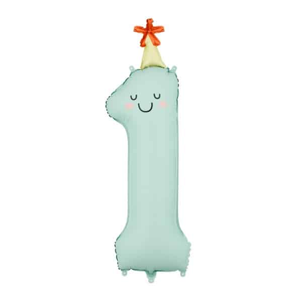 De eerste verjaardag is een bijzonder moment en dat vier je natuurlijk met feestelijke decoratie. Deze cijferballon Smiley één zorgt direct voor een vrolijke sfeer op het feestje. De grote folieballon in zachte mintgroene kleur heeft een schattig gezichtje en een feestelijk hoedje. Perfect als blikvanger bij de taarttafel, in een ballonnenset of als decoratie voor een eerste verjaardagsfeest.