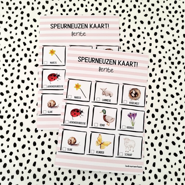 De feestkaart seizoen lente is een speelse en educatieve kaart waarmee kinderen het voorjaar ontdekken. De herkenbare lente illustraties nodigen uit tot kijken, benoemen, kleuren en schrijven. Perfect voor lenteactiviteiten, themaweken en traktaties op school of thuis.
