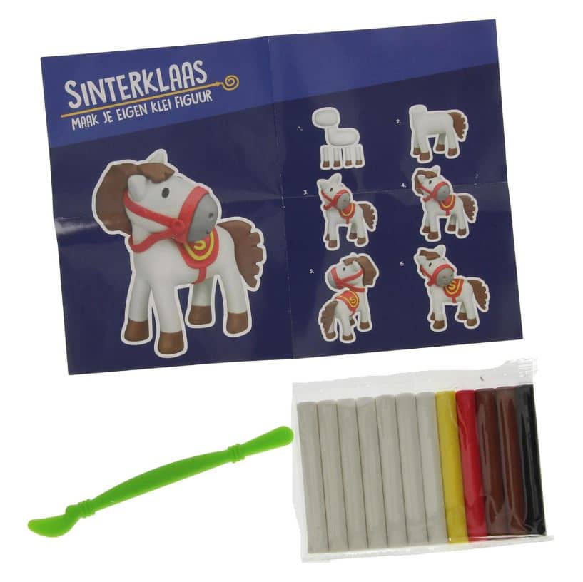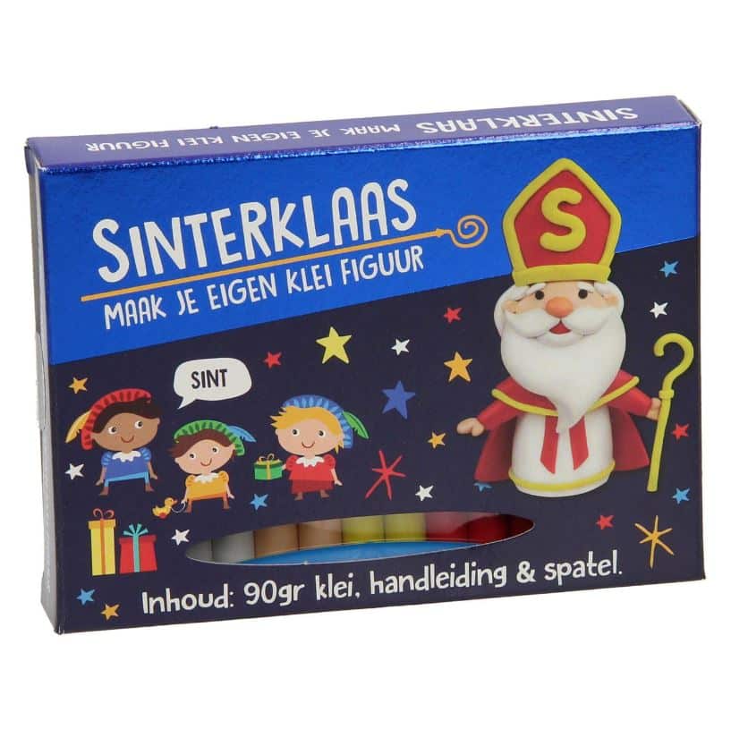 Maak je eigen Sinterklaas klei figuur. De knutselset bestaat uit: 12 rolletjes klei, een spatel en een voorbeeld.