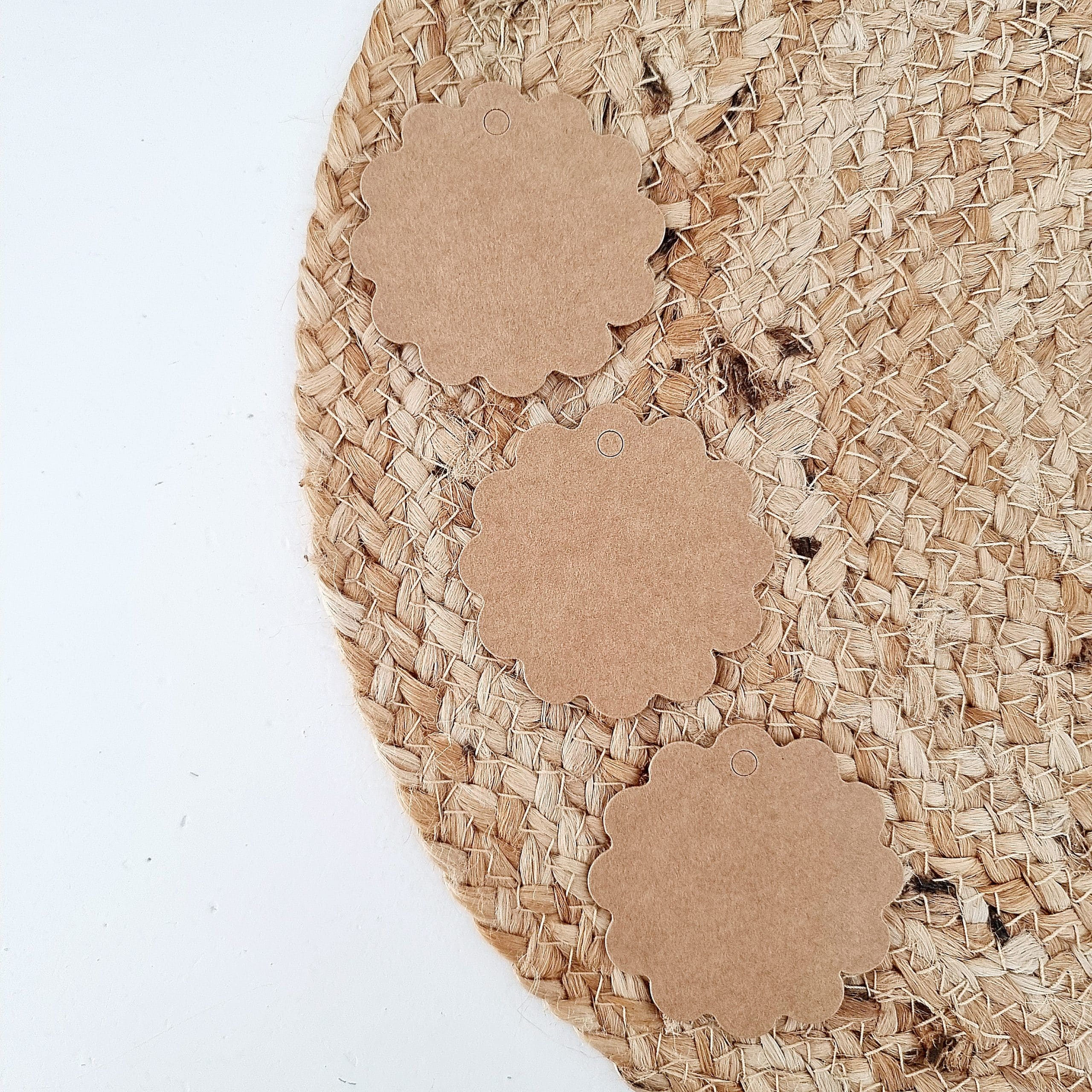 De bloemvormige labels zijn verkrijgbaar in twee kleuren: stoer zwart of natuurlijk kraft. Beide varianten zijn neutraal en combineren prachtig met lint, touw of cadeaupapier in elke kleur. Een subtiel detail dat je cadeau net dat beetje extra charme geeft.