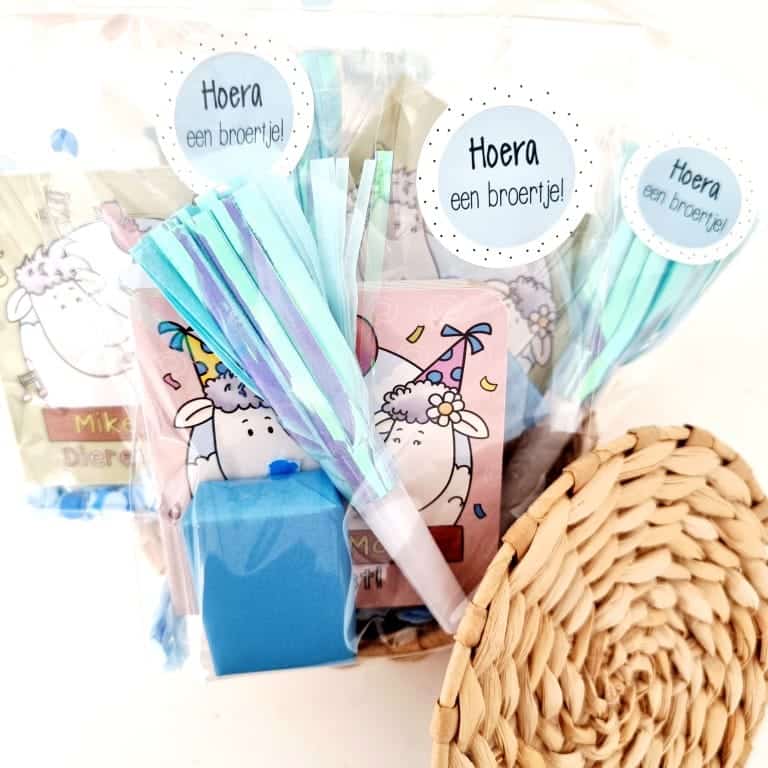Vier de geboorte van een broertje of zusje met deze vrolijke Mike en Molly geboortetraktatie! Deze kant en klare traktaties zijn feestelijk verpakt en direct klaar om uit te delen bij school, kinderdagverblijf of kraamfeest. Een kleurrijke en vrolijke traktatie waar iedereen blij van wordt.