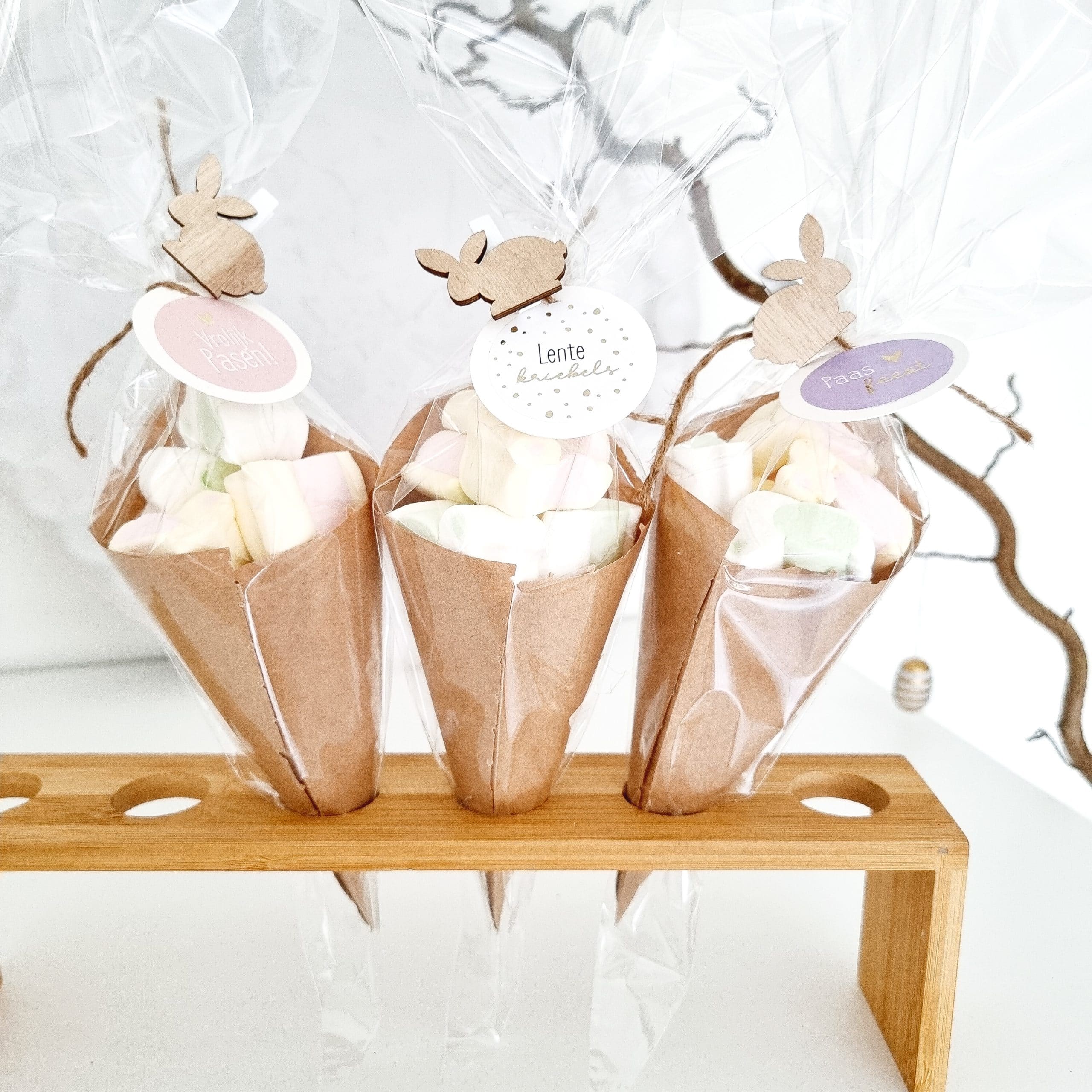 Combineer de papieren puntzakken met onze bijpassende houders of stickers om je presentatie nog persoonlijker te maken. Zo creëer je een feestelijke én duurzame traktatie waar iedereen blij van wordt.