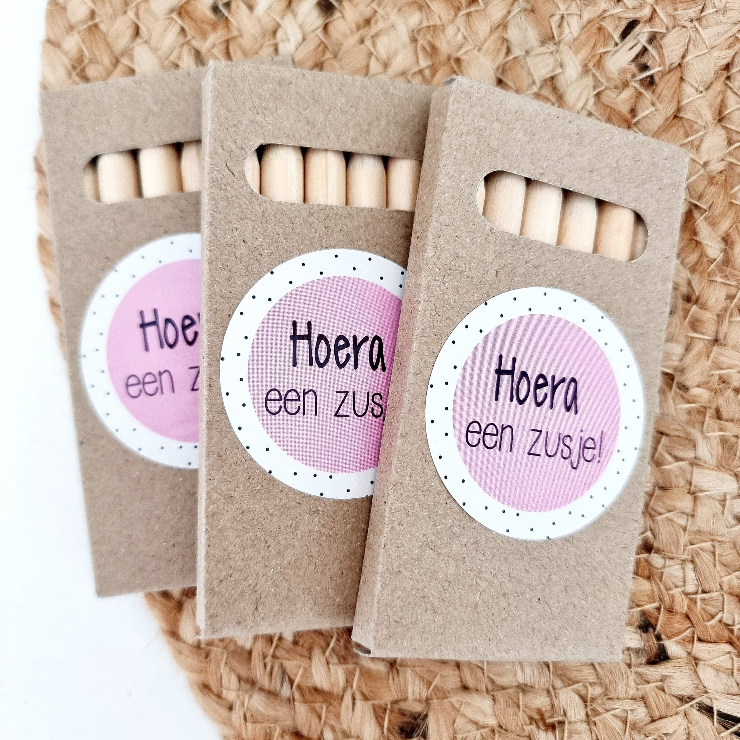 Elk doosje bevat meerdere potloodjes verpakt in een natuurlijke craftverpakking. De stickers met teksten als “Hiep hiep hoera” of “Ik ben jarig dus ik trakteer” geven de traktatie een feestelijke uitstraling. Verkrijgbaar in verschillende thema’s, zodat je altijd een ontwerp vindt dat past bij de jarige.