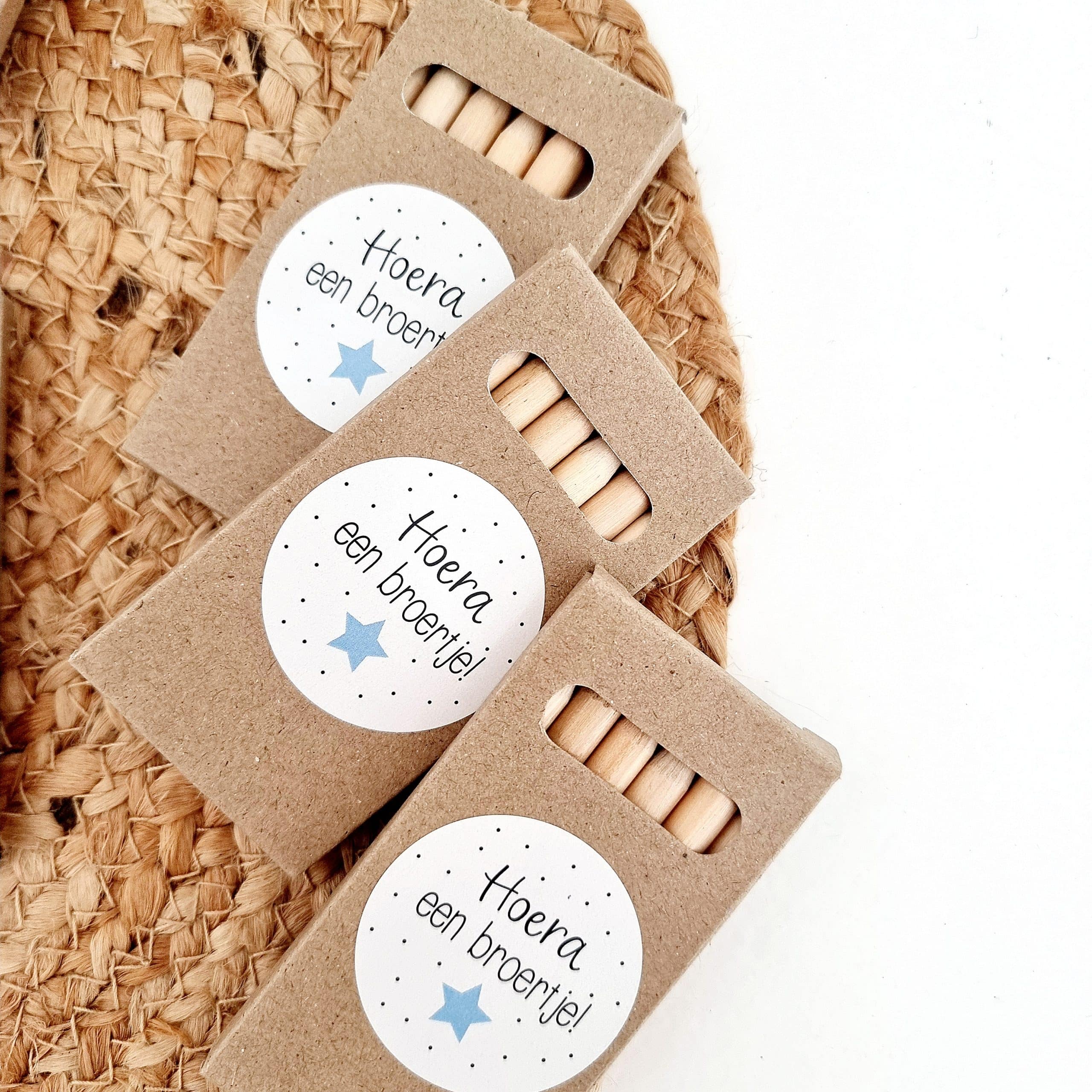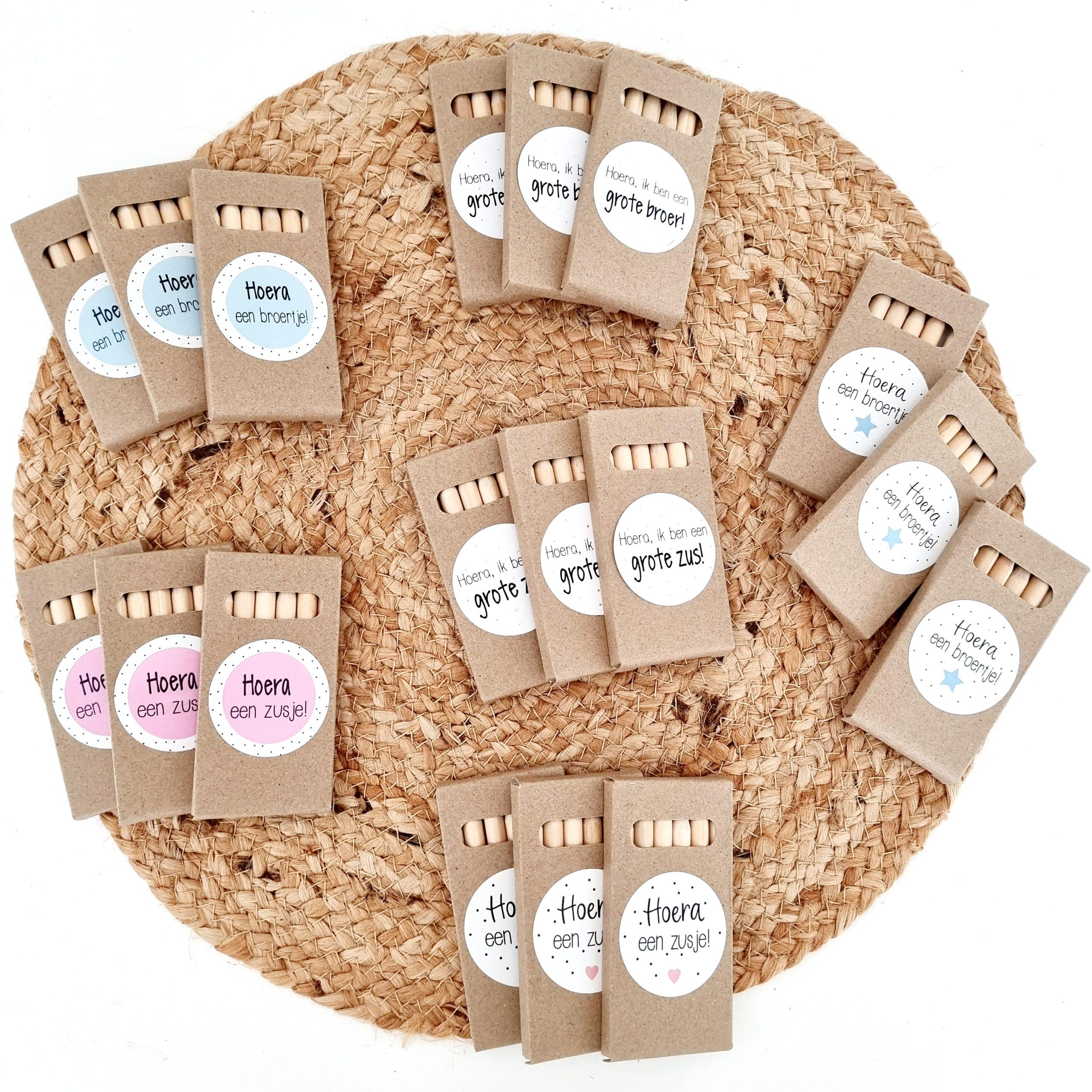 Vier een verjaardag in stijl met deze potlooddoosjes met sticker! De set bestaat uit 6 craft doosjes met houten potloodjes, afgewerkt met een feestelijke sticker naar keuze. Ideaal als traktatie op school, cadeautje voor klasgenootjes of bedankje na een feestje.