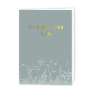 Deze rouwkaart is niet alleen geschikt om direct na een verlies te versturen, maar ook voor herdenkingsmomenten of om iemand later nog een hart onder de riem te steken. De neutrale en tijdloze uitstraling maakt de kaart breed inzetbaar.