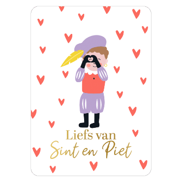 Geef jouw cadeautjes een extra persoonlijke touch met deze schattige Sinterklaas wenskaart. De tekst “Liefs van Sint en Piet” en het vrolijke ontwerp met hartjes maken deze kaart perfect om liefdevolle groetjes over te brengen tijdens het Sinterklaasfeest.
