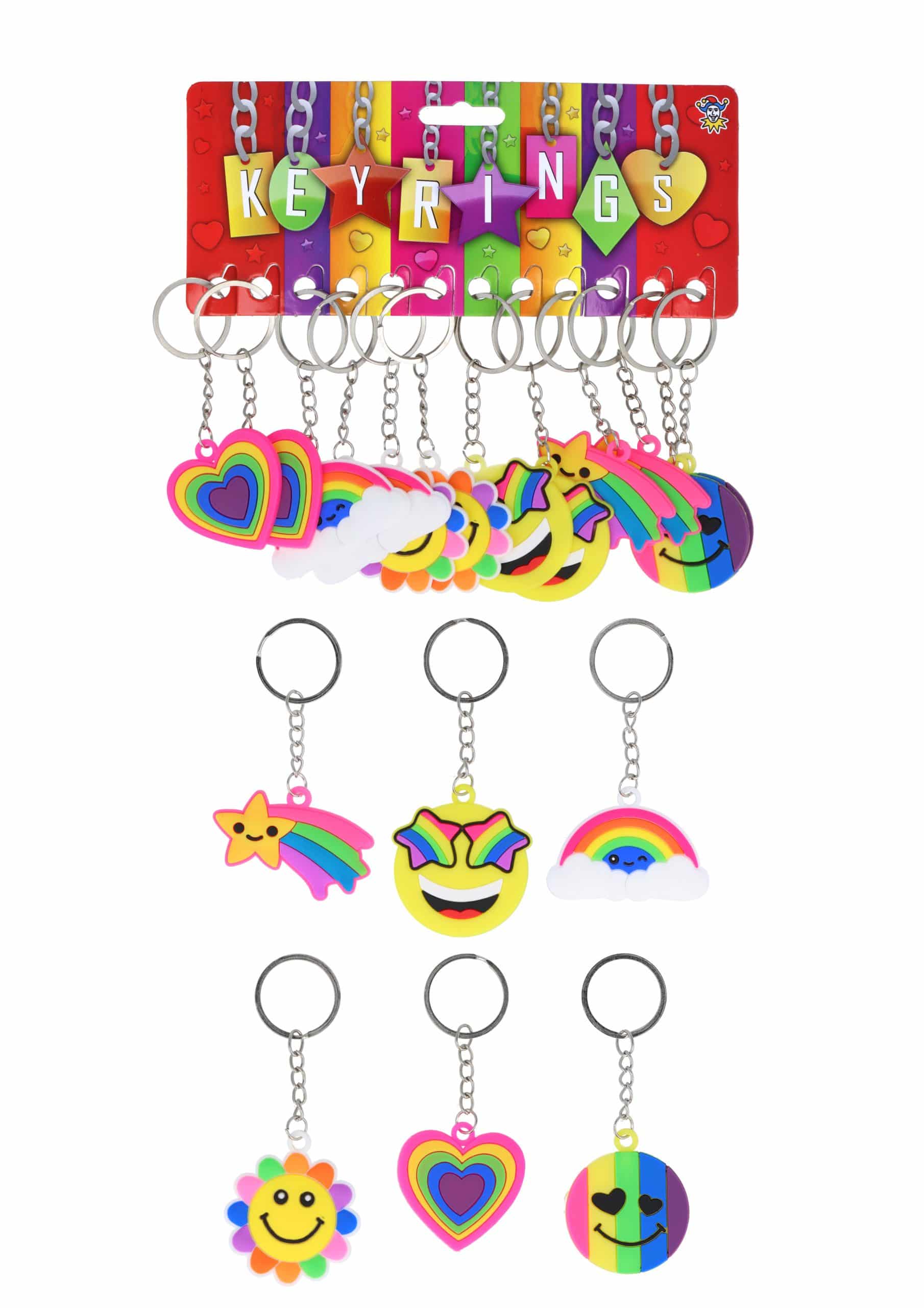 Elke sleutelhanger is gemaakt van stevig kunststof met een metalen ring, zodat je ze makkelijk kunt bevestigen aan sleutels, rugzakken of etuis. De felle regenboogkleuren zorgen direct voor een blij gevoel – perfect voor jong en oud!