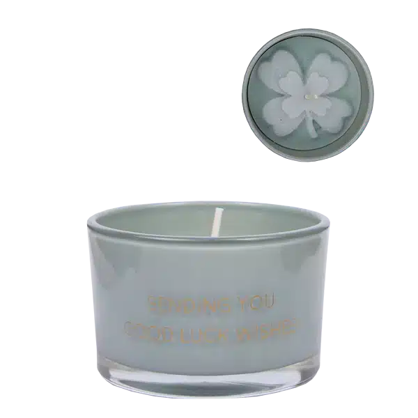 De sojakaars Sending You Good Luck Wishes is een stijlvol en betekenisvol cadeau. Deze luxe geurkaars is gemaakt van biologische sojawas en heeft een verfijnde bloemige geur. Het groene waxklavertje bovenop de kaars staat symbool voor geluk en maakt dit item perfect om iemand succes en positiviteit te wensen.