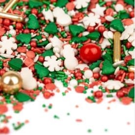 BeschrijvingBreng instant kerstsfeer in je keuken met de Jingle mix. Deze kleurrijke sprinklemix in rood, groen, wit en goud bevat sneeuwvlokjes, kerstboompjes, sneeuwpopjes en parels. Perfect om taarten, cupcakes of desserts een vrolijke kerstuitstraling te geven.