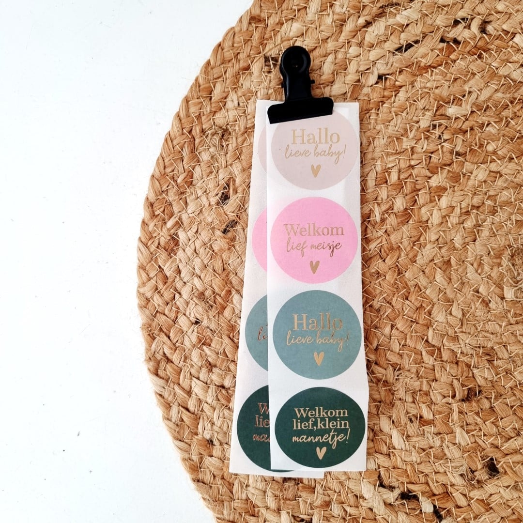 De stickers zijn eenvoudig in gebruik en hechten goed op papier, kraft en folie. Elke set bevat 12 ronde stickers met vier verschillende ontwerpen, zodat je af kunt wisselen tussen lieve en neutrale teksten. Perfect voor zowel jongens als meisjes.