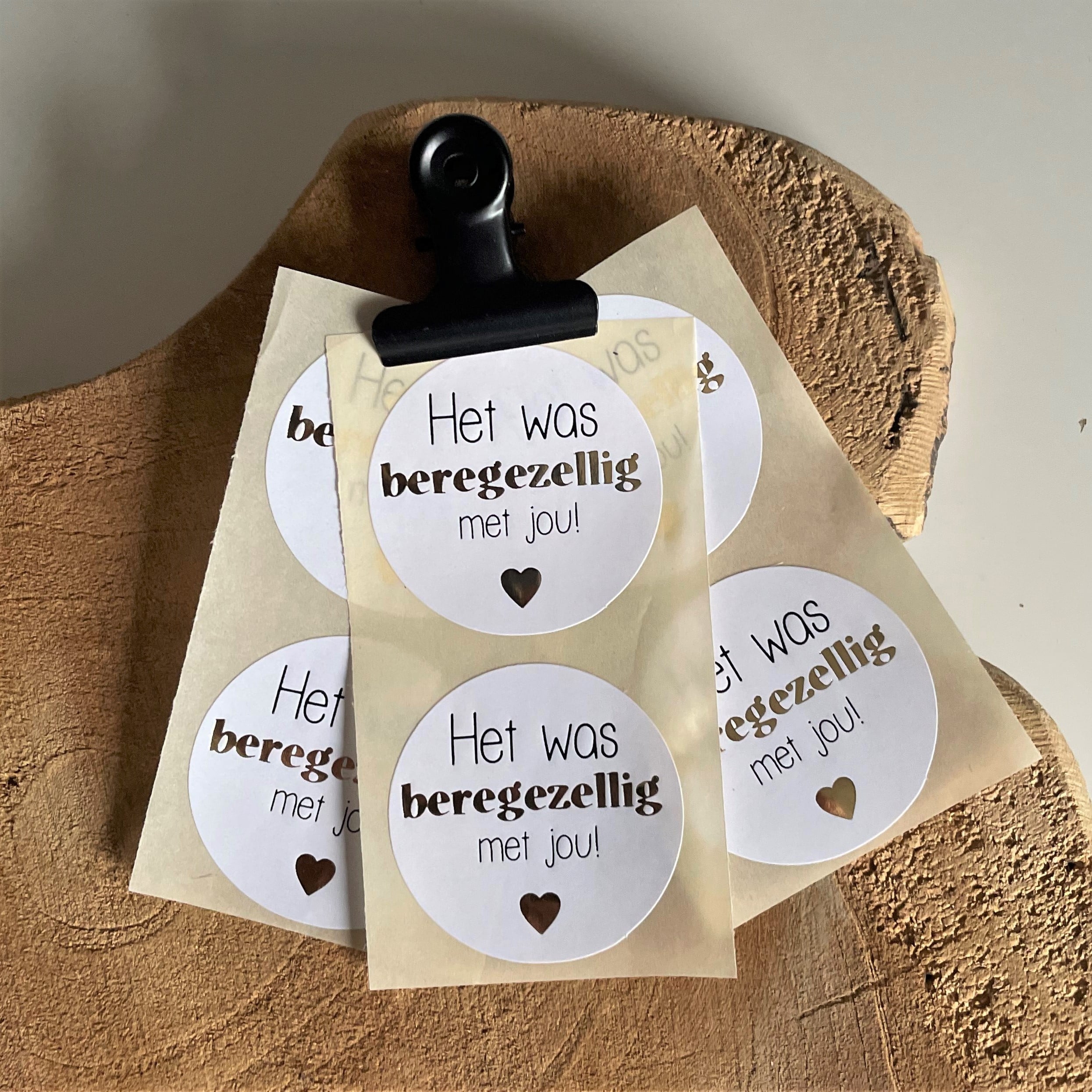 Maak van elk afscheid of feestje iets bijzonders met deze Het was beregezellig met jou stickers. Bestel vandaag nog en geef je bedankjes een warme, feestelijke touch. Verzending binnen 1–2 werkdagen!