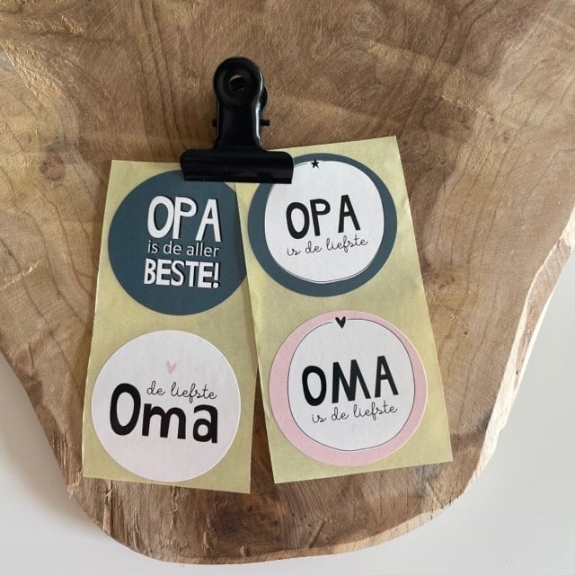 Bestel de sticker opa en oma set en voeg meteen een lieve en persoonlijke touch toe aan elk cadeautje.