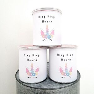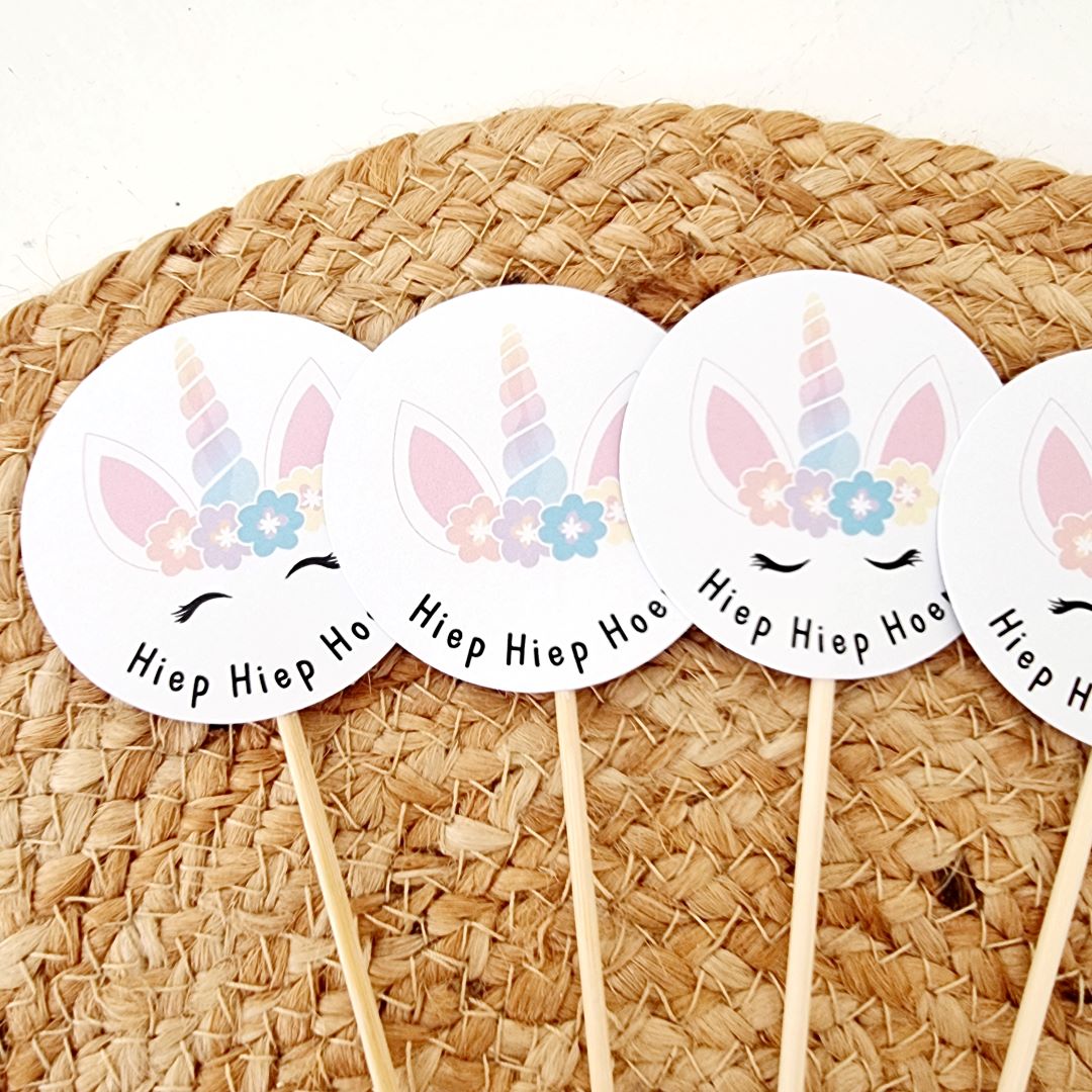 De prikkers zijn voorzien van een schattig eenhoornontwerp met bloemenkrans en zachte pastelkleuren. De tekst “Hiep Hiep Hoera” maakt het feest compleet. Combineer ze met bijpassende stickers of zakjes voor een sprookjesachtige uitstraling.