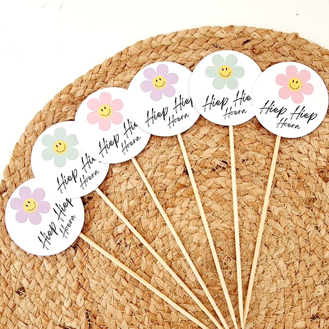Bestel nu jouw set traktatieprikkers smiley bloem en geef je traktaties een vrolijke twist!