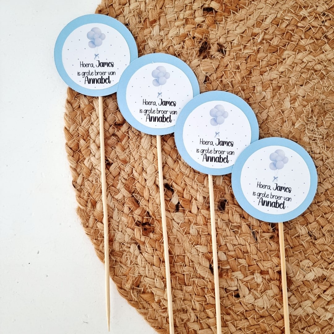 Geef elke traktatie een feestelijke uitstraling met deze traktatieprikker met naam in ballonnen thema. De zachte kleuren en speelse ballonillustraties maken deze prikker perfect voor een verjaardag, kinderfeestje of schooltraktatie. De prikkers worden volledig afgewerkt geleverd en zijn direct klaar om te gebruiken.