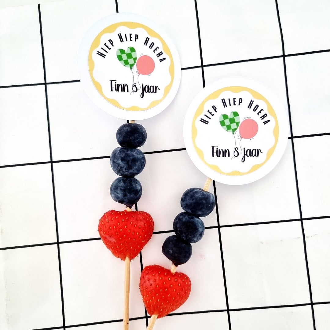 Wij plakken de stickers zorgvuldig voor je op de labels, zodat je een compleet product ontvangt zonder extra werk. De totale hoogte van de traktatieprikker is circa 18 cm, waarvan ongeveer 2 cm wordt gebruikt voor de bevestiging in de traktatie. Na ontvangst zijn de prikkers direct klaar om uit te delen.