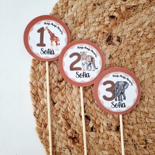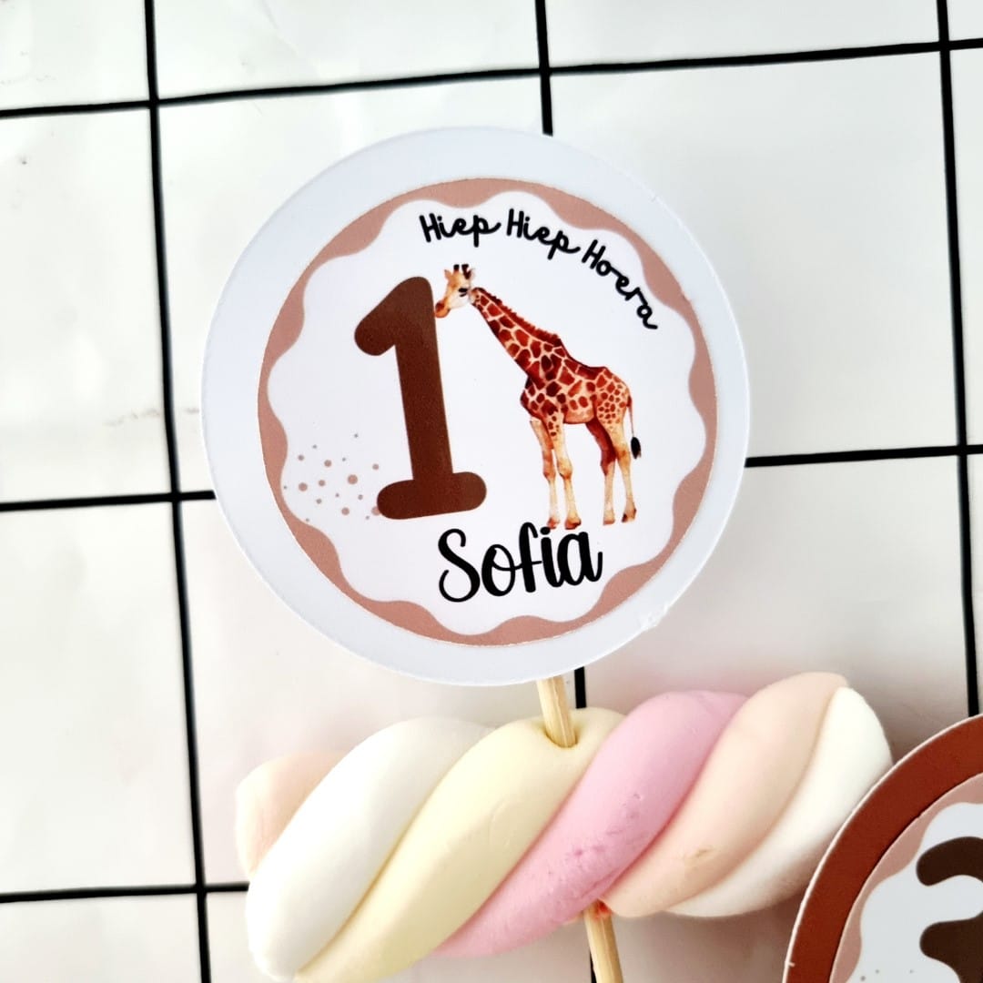 Deze verjaardag traktatieprikkers zijn geschikt voor cupcakes, cake pops, fruit en andere kleine traktaties. Door het jungle thema zijn ze vooral populair bij kinderen die van dieren houden. Ook perfect als decoratief detail op een traktatietafel of sweet table.