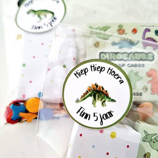 De dinosaurus verjaardag stickers zijn speciaal ontworpen voor jonge dinofans. Door de toevoeging van een naam maak je elke traktatie uniek. De illustraties zijn vrolijk en stoer tegelijk, waardoor ze perfect passen bij een jongens of meisjes verjaardag met een dinosaurus thema.