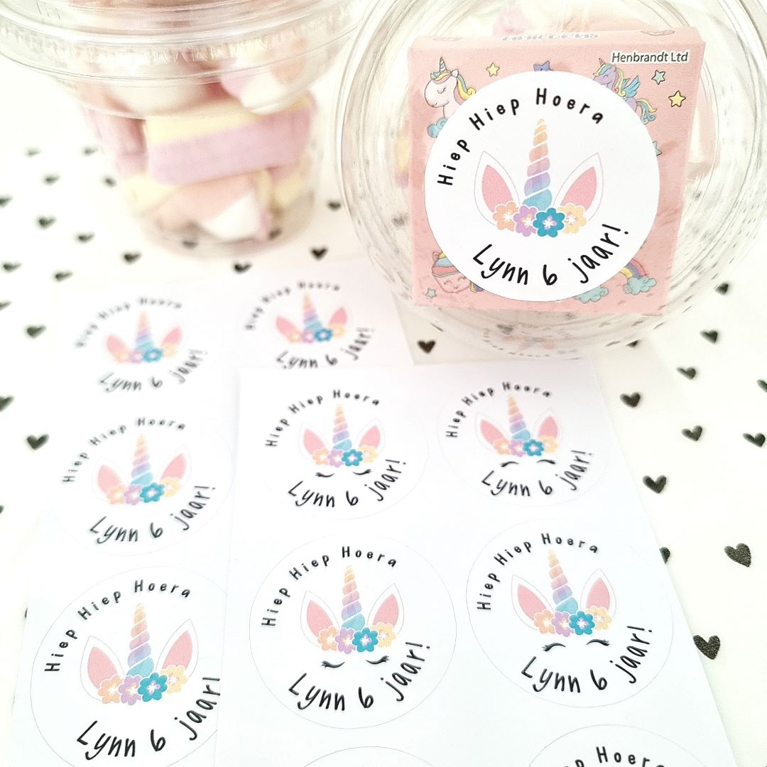Maak de verjaardag extra feestelijk en bestel jouw persoonlijke eenhoornstickers direct.