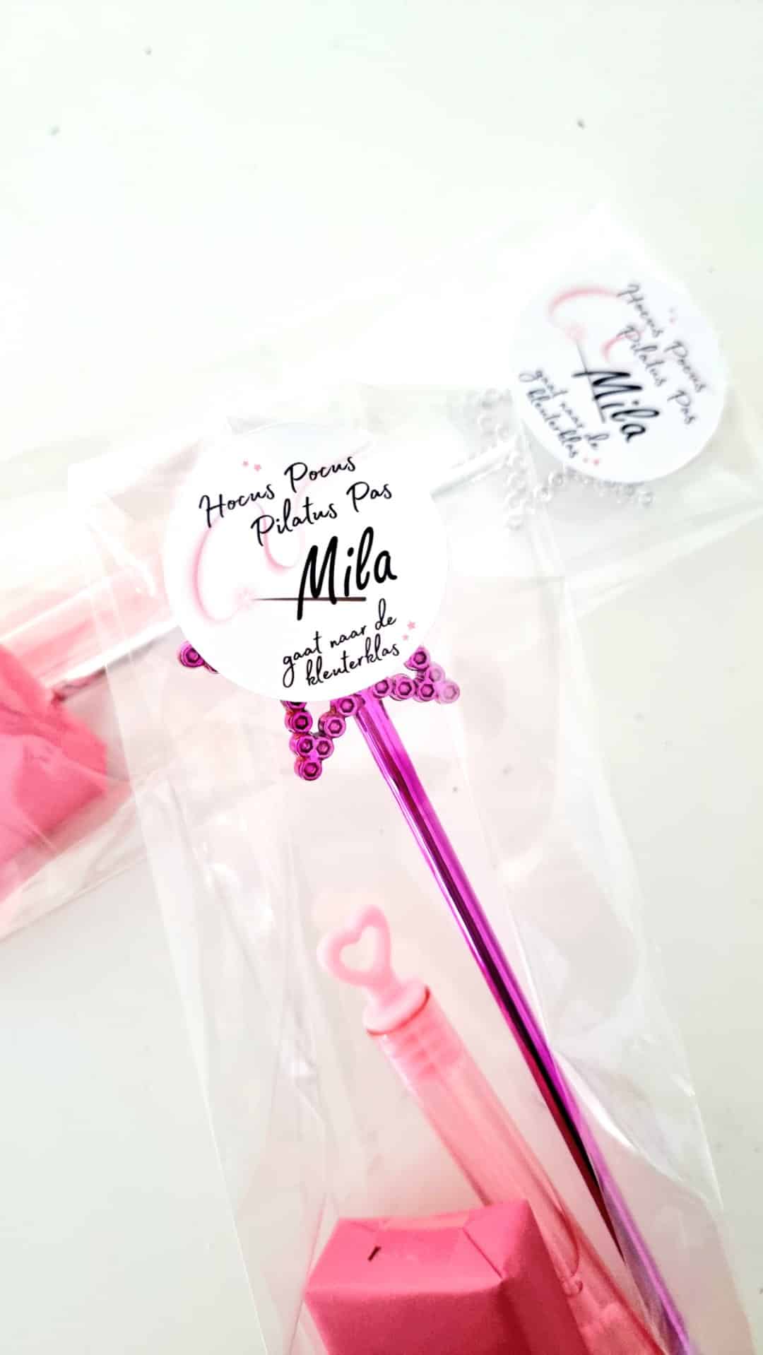 BeschrijvingDeze verjaardag sticker met naam is ideaal voor een afscheid op het kinderdagverblijf of de overgang naar de kleuterklas. De vaste tekst Hocus pocus pilatus pas … gaat naar de kleuterklas zorgt voor een herkenbaar en vrolijk moment. Je voegt eenvoudig één naam toe, waardoor de sticker persoonlijk en direct klaar voor gebruik is.