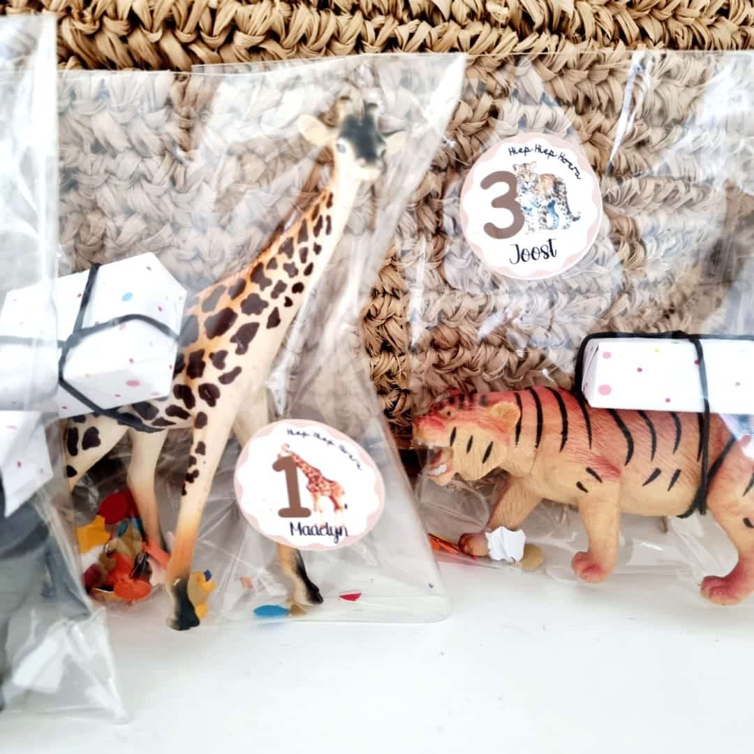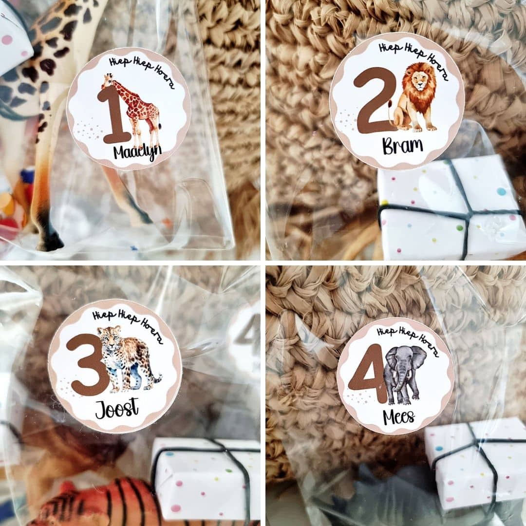 Het jungle thema is tijdloos en populair bij jonge kinderen. De combinatie van dieren zoals giraffe, leeuw, tijger en olifant sluit perfect aan bij verjaardagen van 1 tot en met 4 jaar. Deze stickers zorgen voor een verzorgde en professionele uitstraling van jouw feestvoorbereiding.