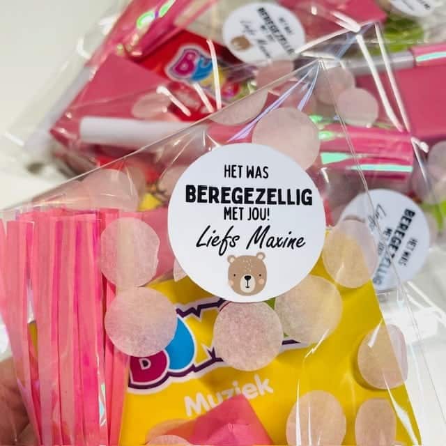 De verjaardagsticker Beregezellig is een leuke en warme afsluiter van elk kinderfeestje. De sticker bevat de tekst Het was beregezellig met jou en kan worden gepersonaliseerd met een naam. Ideaal als bedanksticker op traktaties of uitdeelcadeautjes. Een klein detail met grote impact.