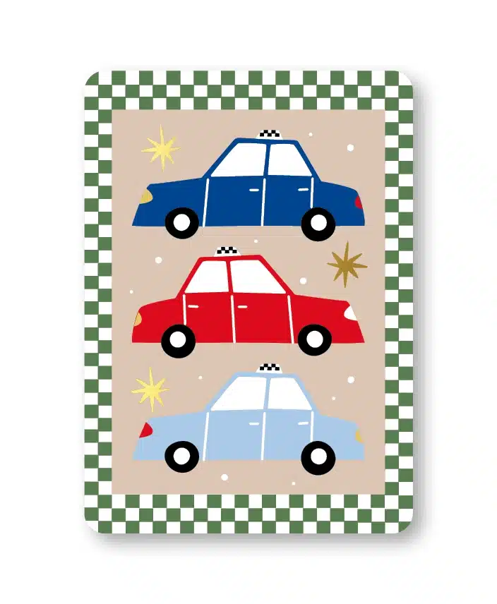 Een vrolijke kaart met auto’s