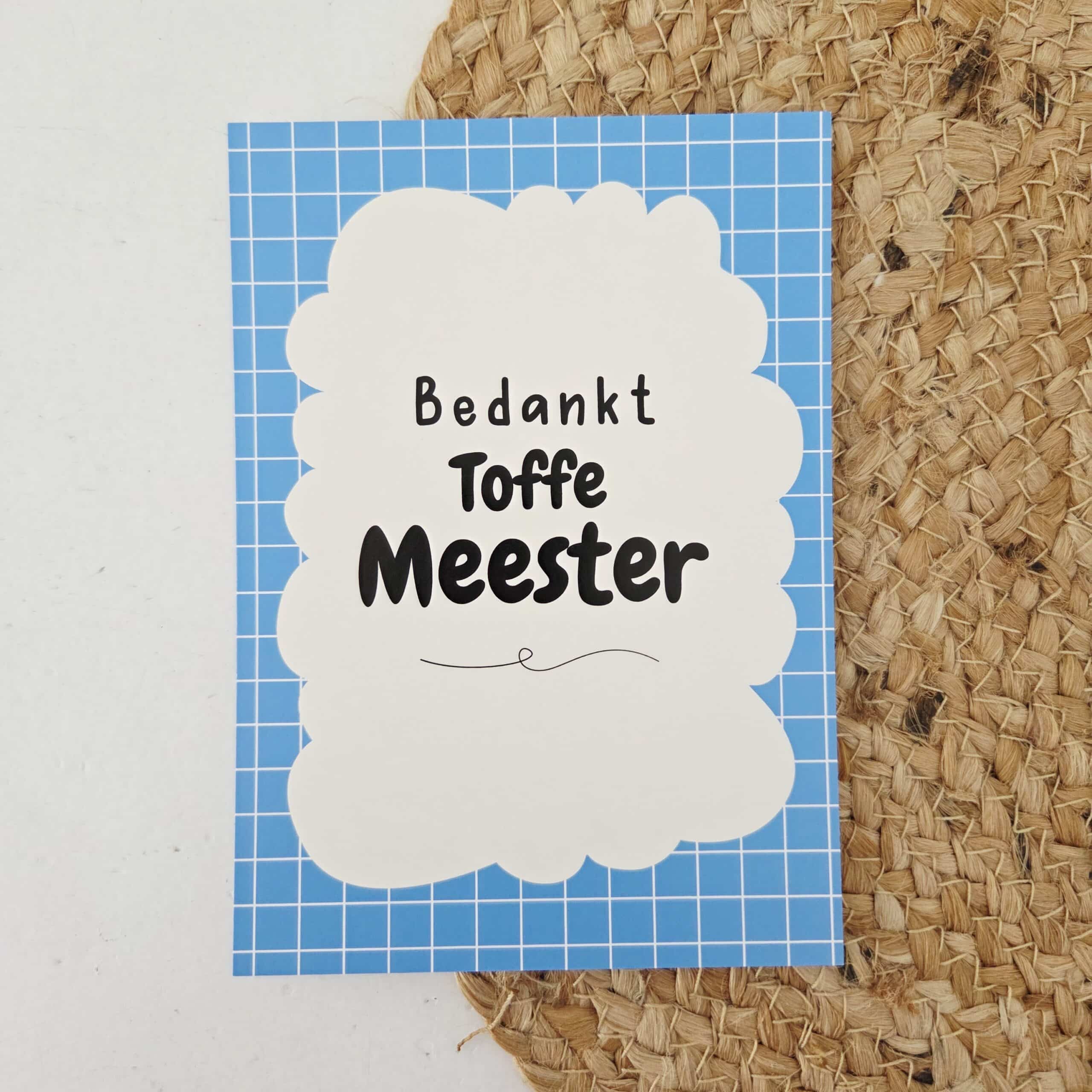 Wil je de meester bedanken voor zijn inzet en enthousiasme? Met de wenskaart Bedankt toffe meester geef je een persoonlijk en positief gebaar. Perfect voor het einde van het schooljaar of als aanvulling op een meester cadeau. Een kleine kaart met grote waardering.