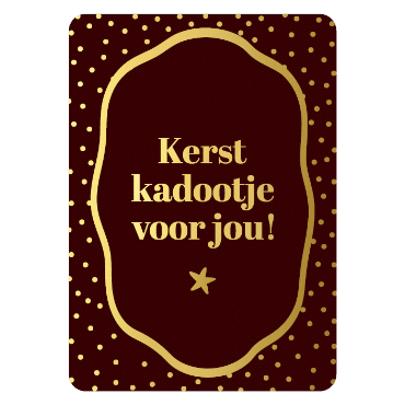 Design: donkerrood met gouden stippen en tekst “Kerst kadootje voor jou!”