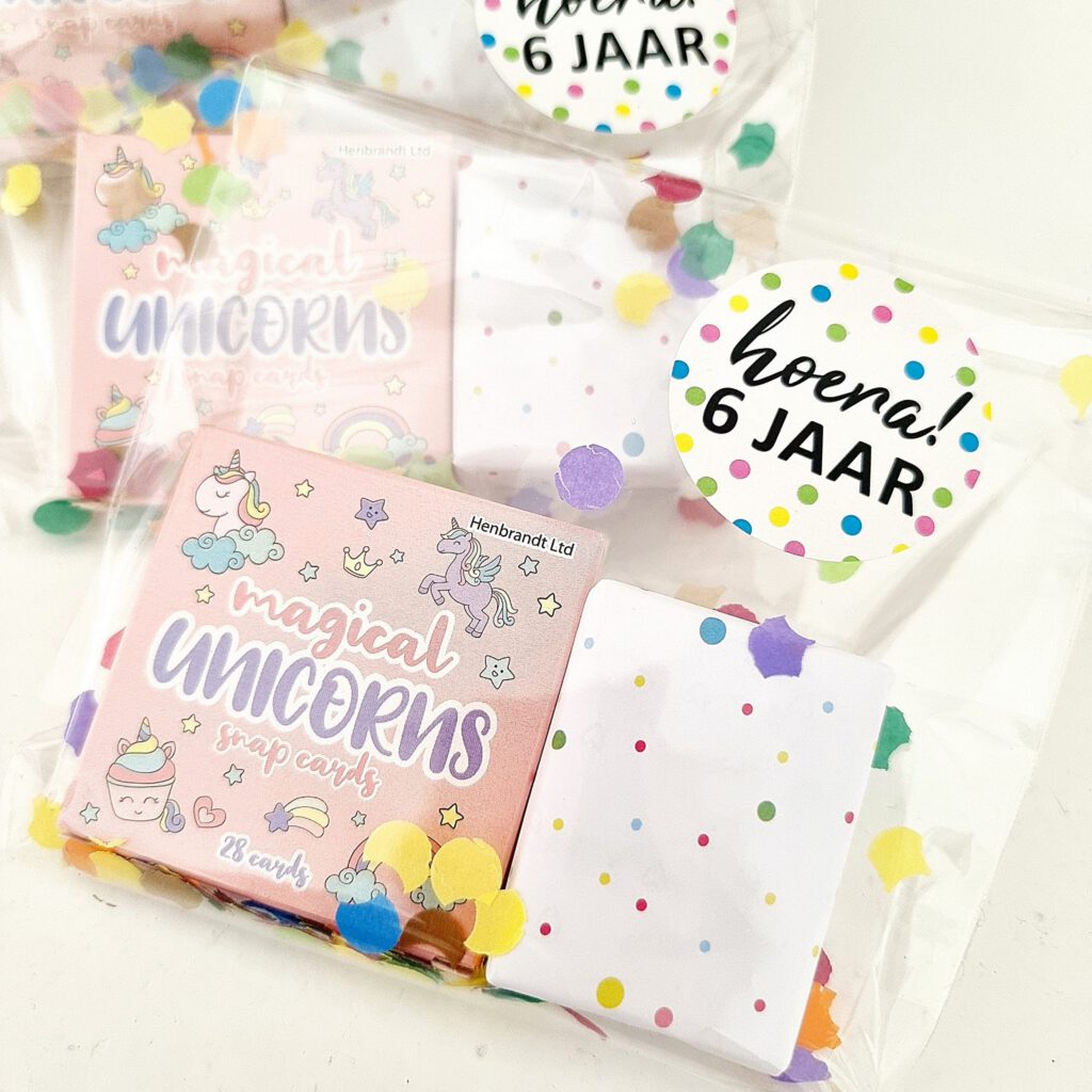 Deze eenhoorn memory traktatie brengt direct magie in de klas. De combinatie van een schattig memoryspelletje en een vrolijk verpakt