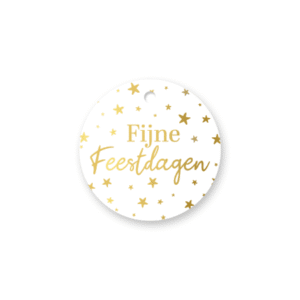 Cadeaulabel kerst (rond) | Fijne feestdagen sterren wit | 3 stuks