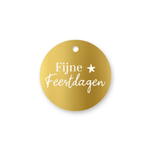 Cadeaulabel kerst (rond) | Fijne feestdagen goud | 3 stuks