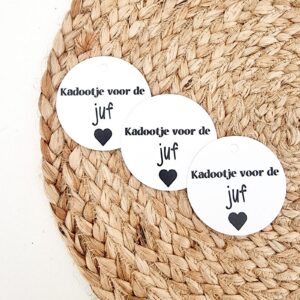 Cadeaulabel (rond) | Kadootje voor de juf! | 3 stuks